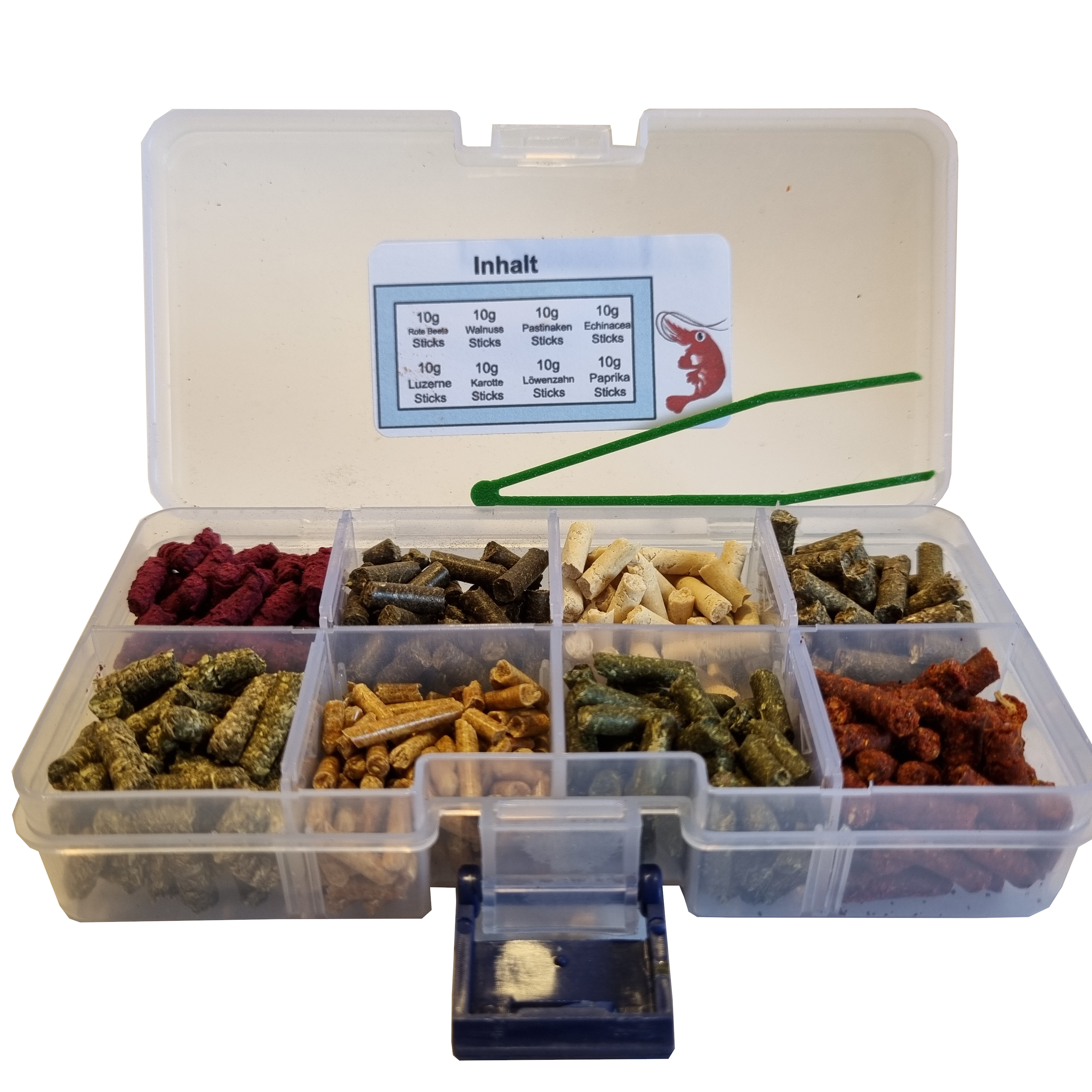 Mit unserer Futter-Box können Sie Ihre Garnelen abwechslungsreich und ausgewogen füttern.