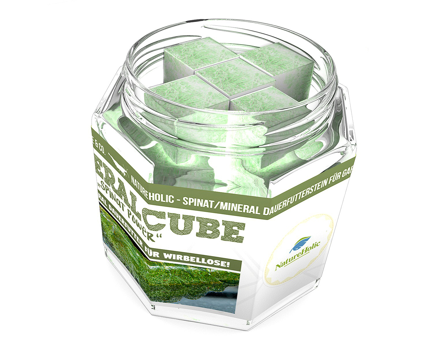 Mit den innovativen NatureHolic MineralCubes "Spinat Power" bieten wir eine two-in-one Lösung zur Mineralstoffversorgung und gesunden Dauerfuttergabe für Wirbellose im Süßwasser: Krebse, Garnelen, Schnecken und Krabben.