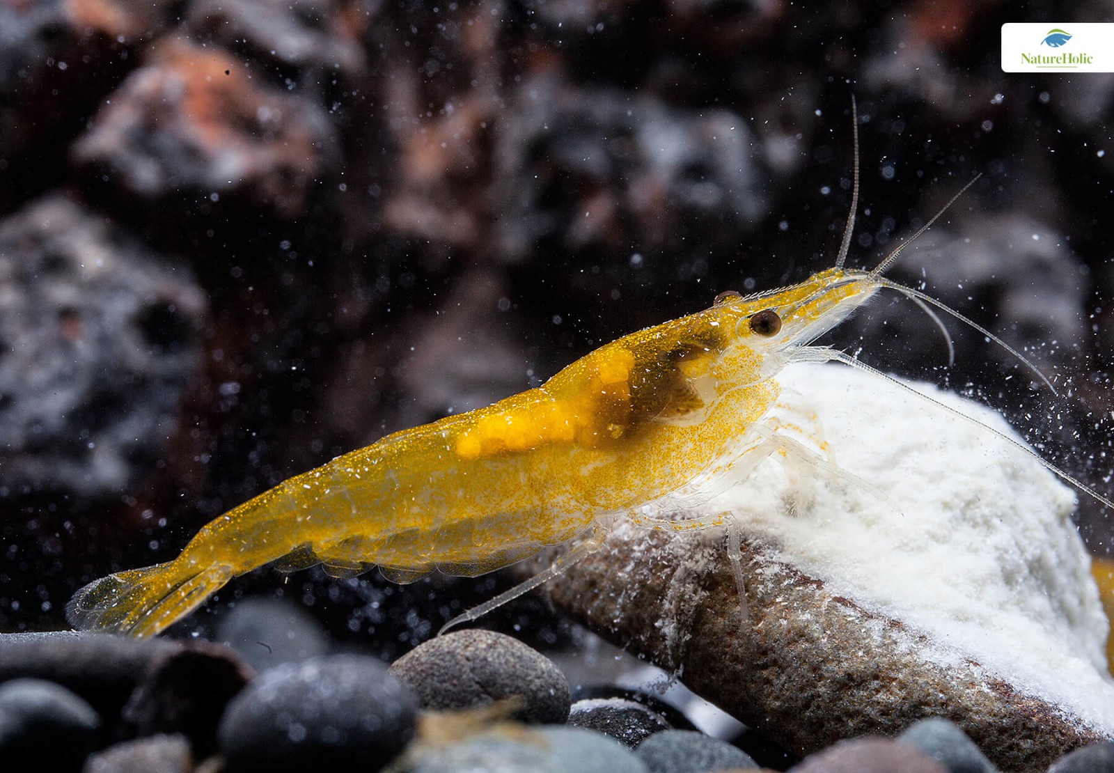 Die Futterpartikel des MineralPuddings sind genau so groß, dass sie von Garnelen, Zwergkrebsen, Schnecken und sogar von Muscheln sehr einfach aufgenommen werden können.