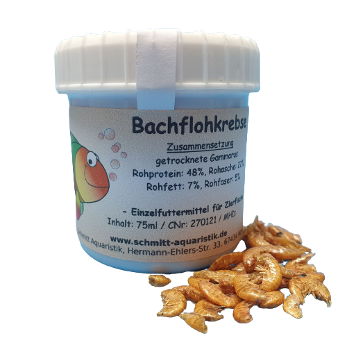 Die getrockneten Bachflohkrebse sind eine gute Protein- und Ballaststoffquelle und die natürlichen Carotinoide tragen dazu bei, dass sich die Farben der Fische besonders schön ausbilden können.