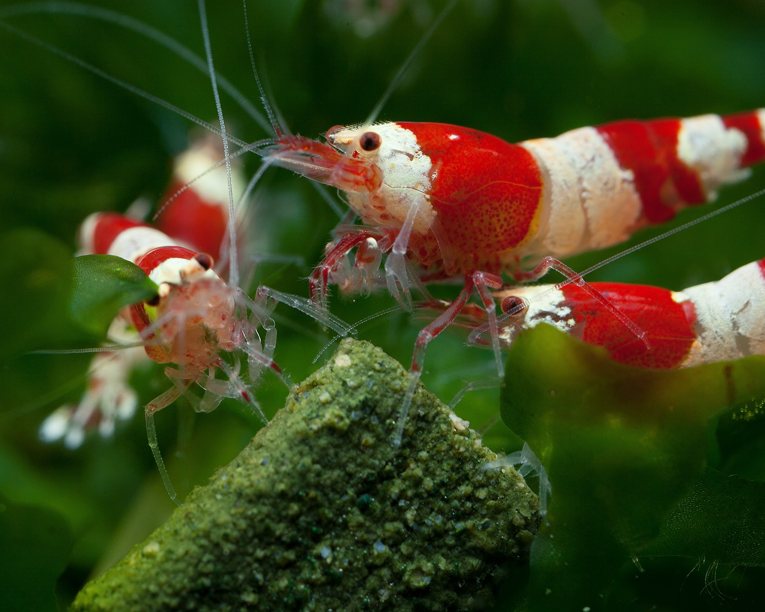 Füttern Sie 1-2-mal täglich so viel, wie die Tiere in wenigen Minuten aufnehmen. Sparsam füttern, in der Regel genügt ein 5 mm Pad für 15-25 Garnelen.