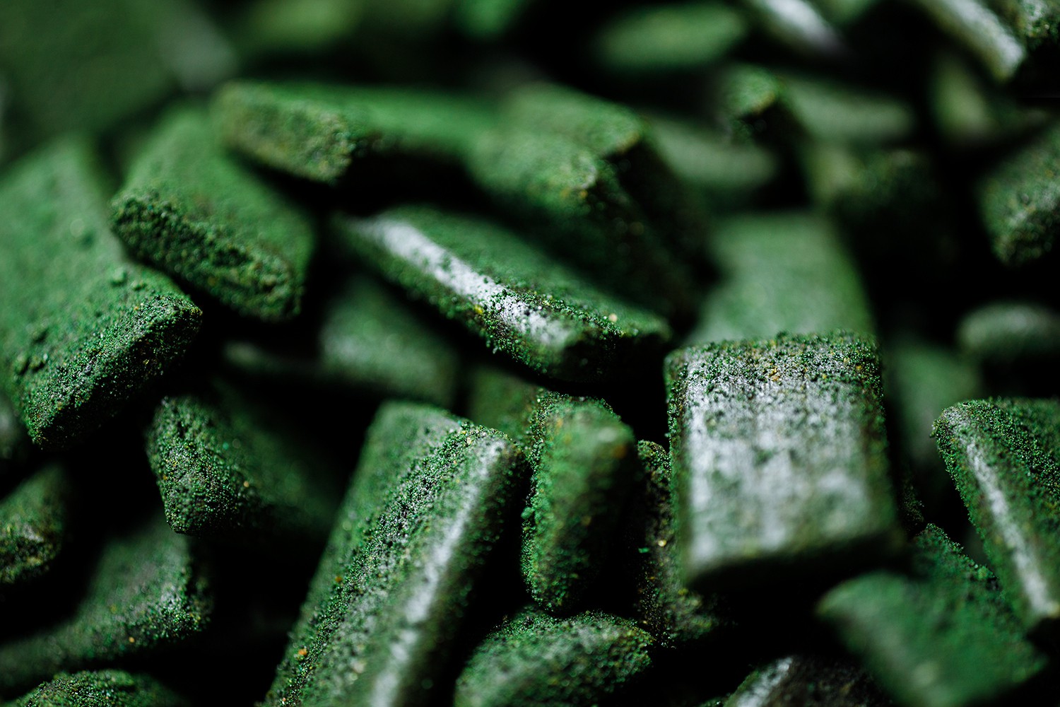 Wertvolles Spirulina, Moringablätter und jodhaltiger Kelp steuern Vitalstoffe wie Vitamine, Provitamine, Spurenelemente und sekundäre Pflanzenstoffe bei. Aufgeschlossenes Getreide dient als Haupt-Energielieferant. Beta-Glucan und Mannan-Oligosaccharid reiche Auszüge aus Mikroorganismen dienen als Immunbooster. Schonend getrocknete Hefen bringen Nukleotide und Lecithine mit — Schmierstoff für eine Vielzahl energetischer Abläufe.