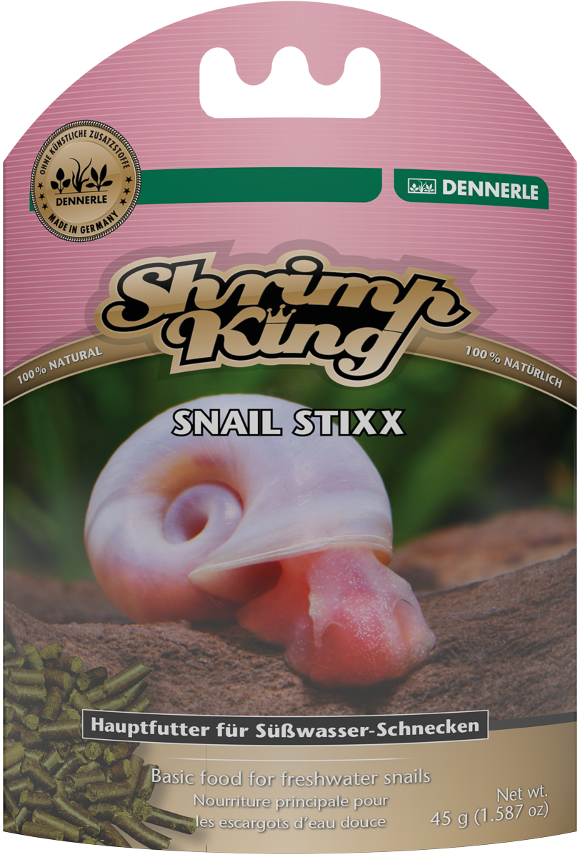 Shrimp King SnailStixx sind speziell entwickelte Hauptfutter-Sticks zur biologisch ausgewogenen Ernährung von Süßwasser-Schnecken. Shrimp King SnailStixx enthält alle notwendigen Nähr- und Aufbaustoffe, die Aquarien-Schnecken täglich benötigen. Die Zusammensetzung orientiert sich am natürlichen Aufwuchs, den Schnecken als „Weidegänger“ zu sich nehmen. Wertvolle Pflanzenkost, z.B. Karotten, Kelp-Algen, Tomaten und Spinat, versorgen die Weichtiere mit lebenswichtigen Vitaminen und sekundären Pflanzenstoffe für einen funktionierenden Stoffwechsel. Natürliche Ballaststoffe unterstützen eine gesunde Verdauung. Hochwertige Proteine und essentielle Aminosäuren aus Mikroorganismen sorgen für ausgeglichenes Wachstum und Vermehrungsfreude. Der extra hohe Kalziumgehalt bietet beste Voraussetzungen für ein kräftiges, wohlgeformtes Gehäuse. Durch die zahlreichen Zutaten ist eine abwechslungsreiche Ernährung in jede Futtergabe eingebaut – wie bei natürlichem Aufwuchs. Shrimp King SnailStixx ist ideal geeignet für alle Arten der Aufwuchs fressenden Schneckenarten. Für ausgeglichenes Wachstum, Vermehrungsfreude und ein kräftiges Gehäuse.