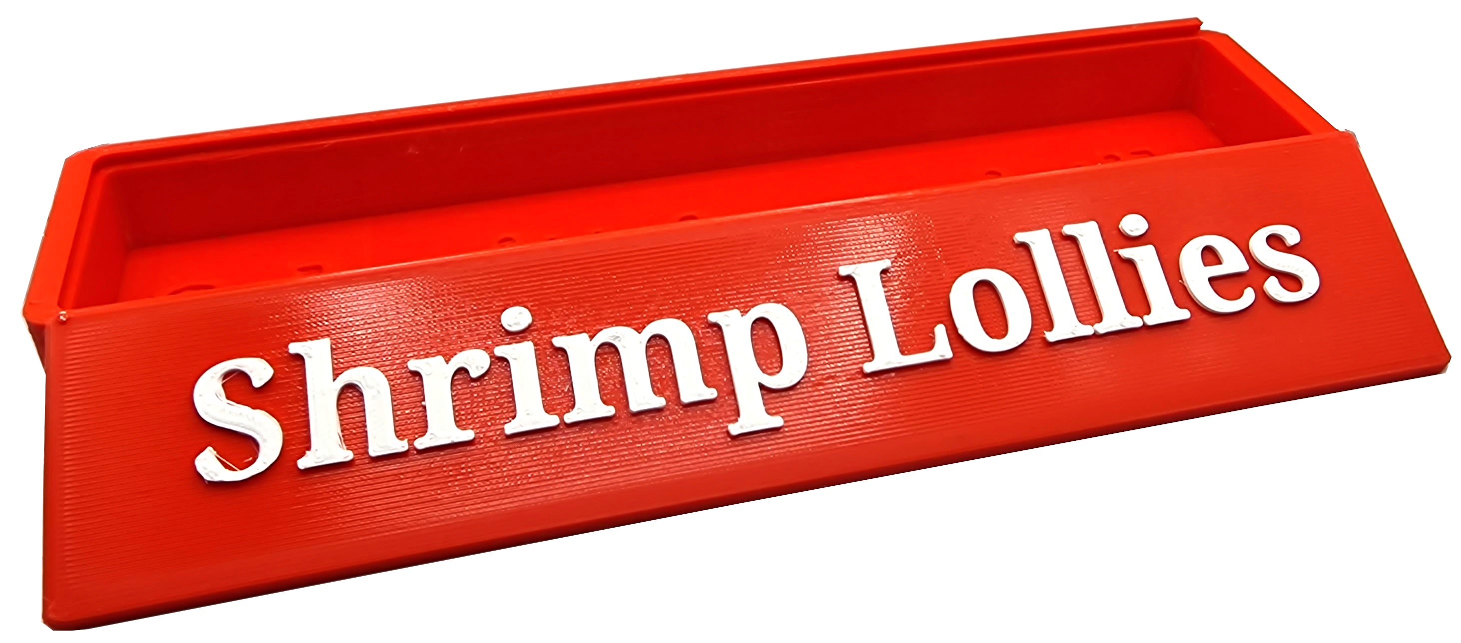 Mit unserer praktischen Shrimp-Lollies Box können Sie ihre Lollies problemlos lagern. In die Box passen mindestens 30 Lollies!